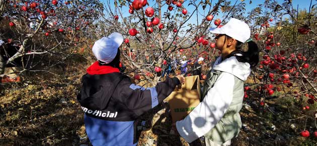 據(jù)沙崗鎮(zhèn)鳴呵嶺村果農(nóng)王國良介紹。他的蘋果園眼下進入豐產(chǎn)期,每天都要及時采摘,不然損失很大。但是最近又恰逢秋收大忙,很多當?shù)卮迕穸既マr(nóng)忙了,這讓他一籌莫展。這件事引起了鲅魚圈區(qū)第二十九中學校黨委的關(guān)注,他們當即呼吁全校師生抽出時間,幫忙采摘蘋果,得到全校師生響應(yīng)和參與。