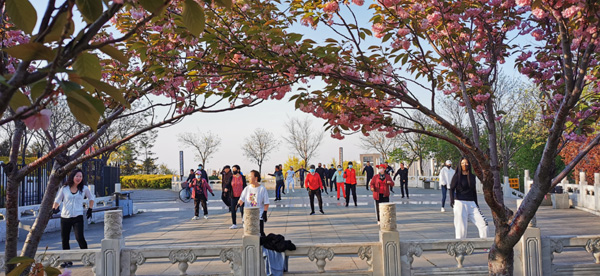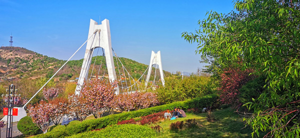 節(jié)日的青龍山上,游客用各種方式表達心情愉悅,歡度節(jié)日,有練太極的,有唱歌跳舞的,有野餐的,建身的,有取景拍照的。享受美景,樂此不疲。
