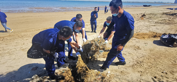 營(yíng)口港應(yīng)急保障中心結(jié)合六月份“黨日”主題實(shí)踐活動(dòng),于6月5日當(dāng)天由仙人島港區(qū)槐樹(shù)林為起點(diǎn),以海灘為終點(diǎn),組織開(kāi)展“世界環(huán)境日,林海伴我行”活動(dòng),從港區(qū)到槐樹(shù)林海灘進(jìn)行一次大掃除清理活動(dòng)?;顒?dòng)結(jié)束港區(qū)整潔海灘清凈,收到了良好的效果。