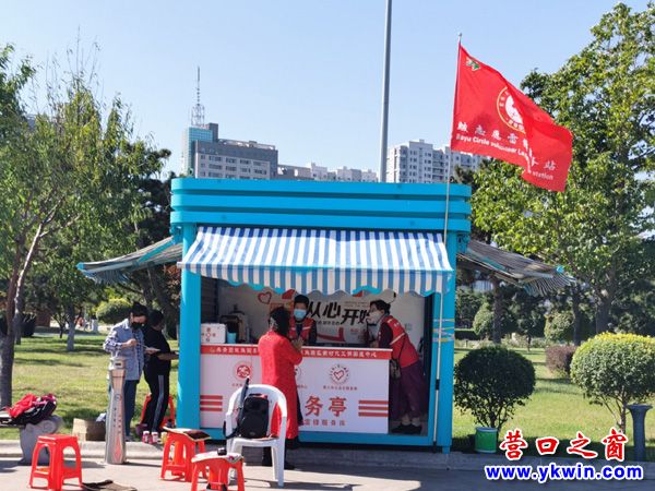 志愿服務(wù)者在公共場所建立“志愿服務(wù)亭”,為需要幫助的人提供服務(wù)。