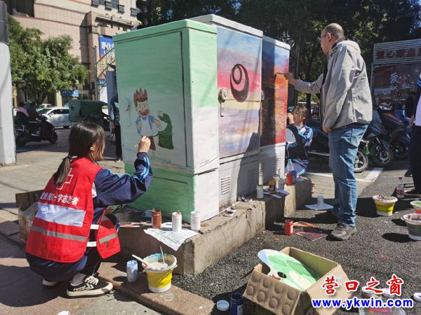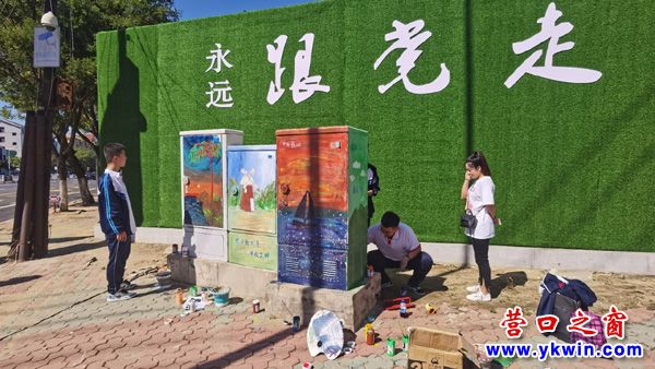 鲅魚圈第二高中的美術(shù)師生志愿者把設(shè)立在路邊呆傻的電氣設(shè)備箱變成了漂亮的藝術(shù)品。