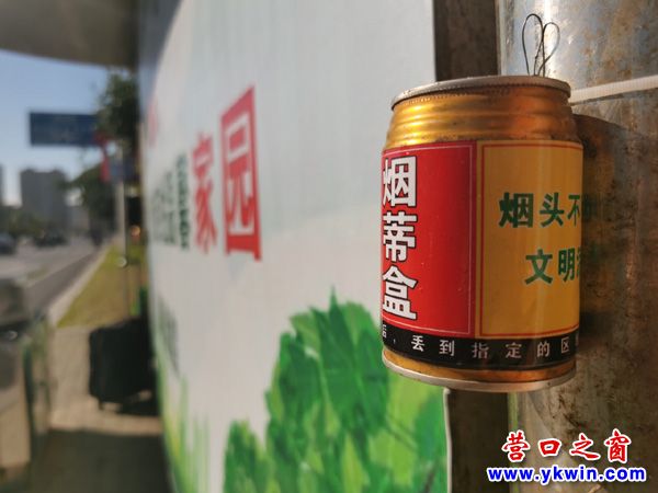 在市內(nèi)公交車站,除設(shè)有垃圾箱“筒”外,還設(shè)有煙蒂盒,為實(shí)現(xiàn)“煙頭不落地”,提供方便。