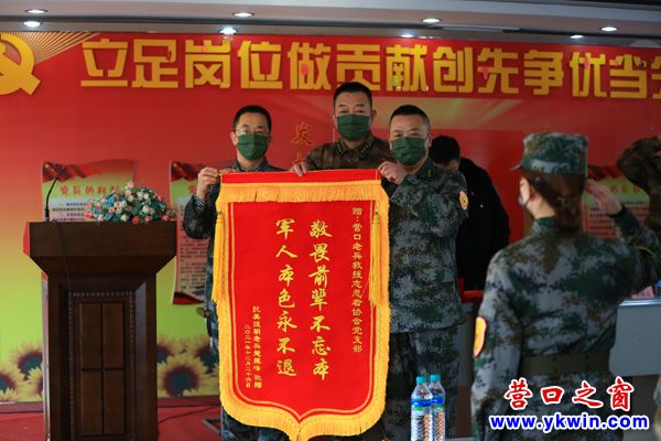 接受抗美援朝老戰(zhàn)士楚振峰為黨員先鋒隊捐贈的錦旗