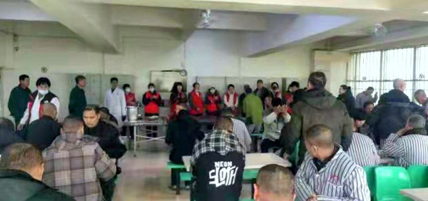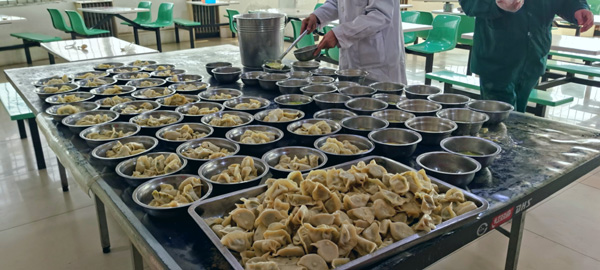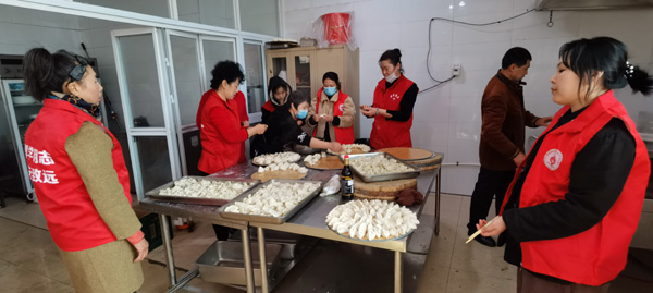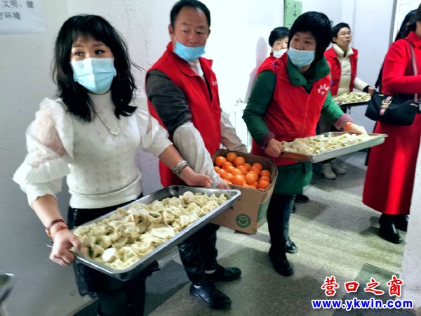 康寧醫(yī)院是一所治療和康復(fù)精神病患者的醫(yī)院,患者們有較長時間與家庭和親人相隔離的特殊性。所以,志愿者們除了給住院的病人帶來了米、面、油、水果、飲料、食品、蔬菜和生活用品,讓他們感受到黨和政府以及社會的關(guān)注關(guān)懷外,又給他們包餃子,讓他們感受到家的溫暖和親人的關(guān)愛。