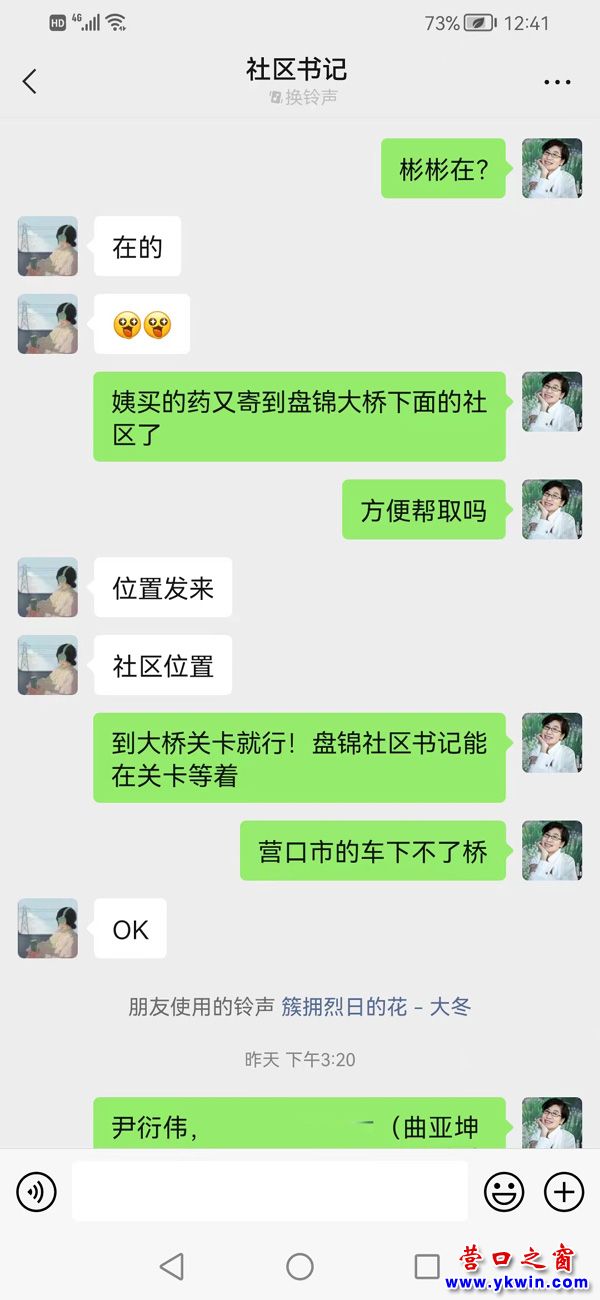 文中所及之人是盤(pán)錦市大洼區(qū)二界溝街道玉帶明珠小區(qū)遼河社區(qū)的尹衍偉書(shū)記;營(yíng)口市西市區(qū)濱海大街鑫海社區(qū)的劉彬彬書(shū)記;還有不知姓名的駐鑫海社區(qū)的公安民警。