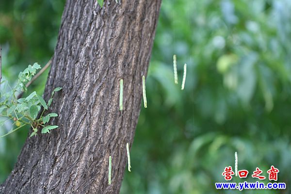 昨天筆者現(xiàn)場看到,這種蟲子全身基本青綠色,分布著均勻的黑色斑點,蟲身大約有1-2厘米長,從體形上來看像菜葉上的青蟲。這些蟲子會吐出白色的絲,把自己懸掛在樹枝上,行走時,會大幅度弓起身子;筆者還了解到,只要到了春夏相交季節(jié),小區(qū)里的一些樹木就會生滿蟲子,許多樹葉被啃光,特別是最近幾年,年年如此,人們不敢在樹下行走,搞得周圍居民苦不堪言。