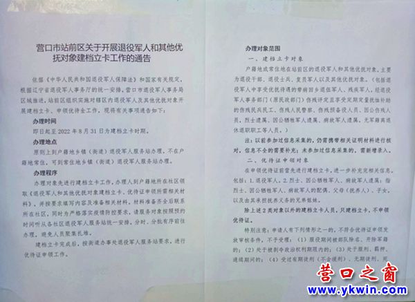 (營口之窗“百姓說事”)8月24日,來到營口市站前區(qū)退役軍人事務(wù)局,見到一則關(guān)于退役軍人申領(lǐng)優(yōu)待證的《通告》(圖一、圖二)。這是該局為退役軍人發(fā)放光榮之家(圖三)門牌之后,為退役軍人辦的又一件好事。