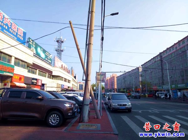 (營(yíng)口之窗“百姓說(shuō)事”)11月9日,來(lái)到營(yíng)口市通惠門市場(chǎng)西門時(shí),發(fā)現(xiàn)街邊一根高大的水泥線桿發(fā)生了傾斜,而它的下面是停著的汽車和來(lái)往的行人。可想而知,它一旦倒了那就是禍從天降啊。