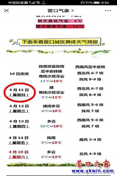 營(yíng)口氣象:昨天4月11日是星期天?為什么?