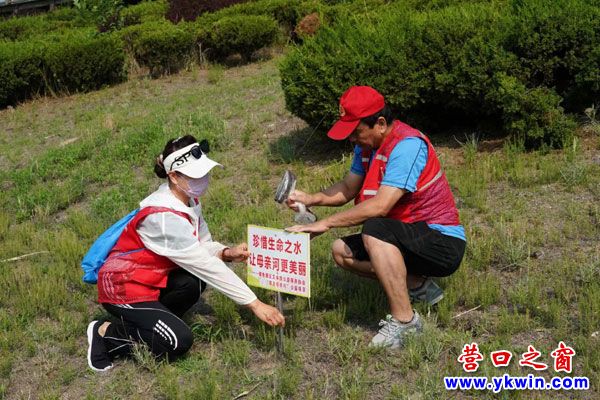上午8點整,鲅魚圈團(tuán)結(jié)志愿服務(wù)隊的隊員們頭頂炎炎烈日,在熊岳河公路橋東側(cè)集合開展了“保護(hù)母親河,愛我家園,創(chuàng)建文明城市”活動。首先由隊長索紹英英、副隊長賀慶祥將六塊書寫著“同飲一河水共護(hù)母親,珍惜生命之水讓母親河更美麗……等牌匾,等距離的豎立在熊岳河北側(cè)的防護(hù)壩上。其他隊員延河岸撿拾各類垃圾,隊員們汗流浹背將撿拾的垃圾裝成袋送到就近的垃圾站……