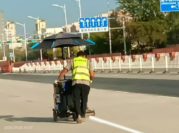 平日里,我們踩著斑馬線穿行、循著箭頭行駛,卻鮮少留意繪制這些“密碼”的人。道路劃線師傅們的戰(zhàn)場(chǎng),不在人聲鼎沸的白晝,多在暮色四合的傍晚、晨光未亮的黎明,或是交通退潮后的深夜。他們頂著烈日、迎著寒風(fēng),彎腰弓背推著劃線機(jī),在滾燙或冰冷的路面上“行走作畫”,成年累月的奔波里,腳下走過的早已遠(yuǎn)超萬里路。