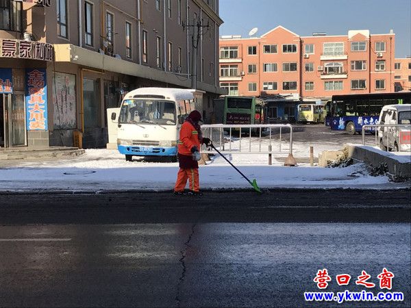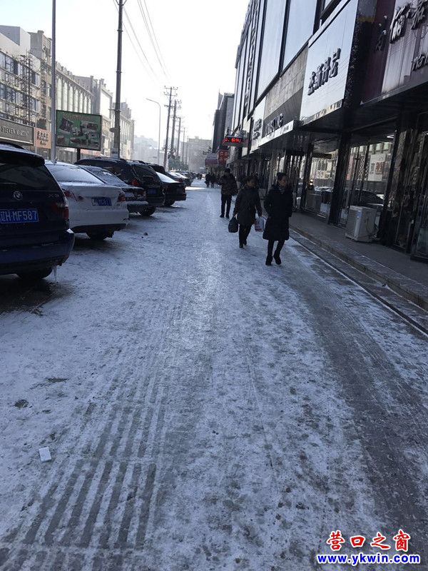 (營(yíng)口之窗網(wǎng)訊許丹)昨日的降雪給居民出行帶來(lái)諸多不便,經(jīng)過(guò)今天早上環(huán)衛(wèi)工人的清掃,城市主干道積雪和結(jié)冰已經(jīng)基本清除,但仍有部分單位、企業(yè)、商鋪門前積雪沒(méi)有清掃。