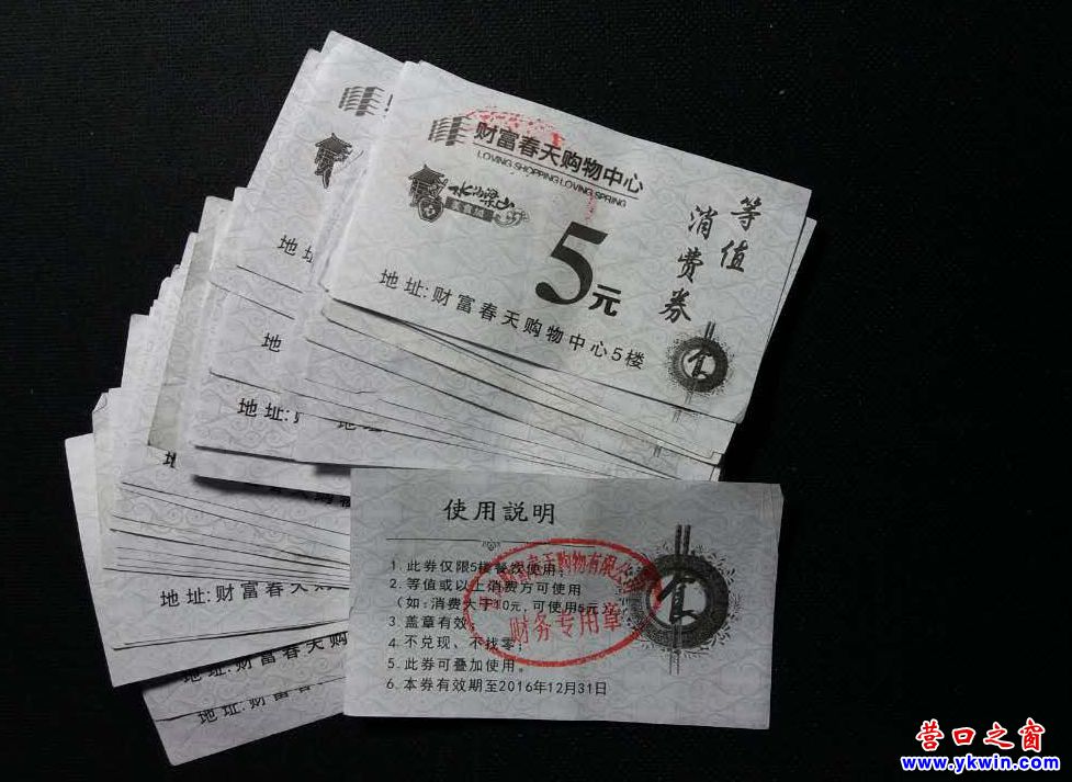 黃女士反映,她手里的營(yíng)口“財(cái)富春天購(gòu)物中心”2016年餐飲消費(fèi)券被限制使用,其“財(cái)富”消費(fèi)券存在霸王條款。