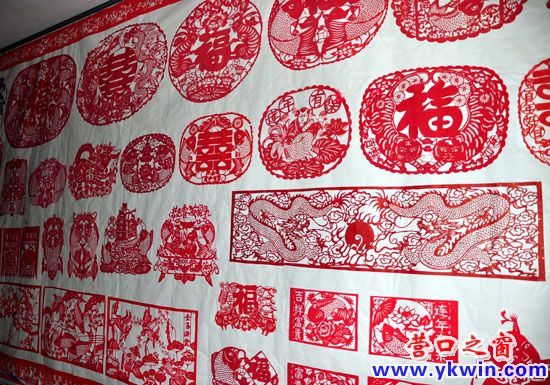 具有營口特點(diǎn)的剪紙藝術(shù)品在展廳里備受矚目