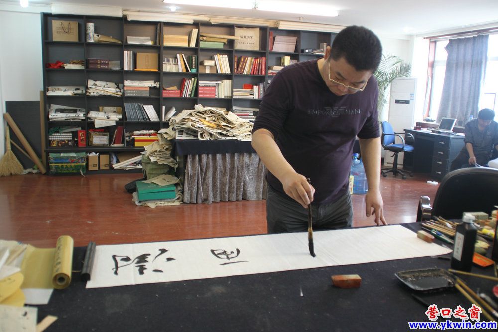 當(dāng)筆者問(wèn)他,是否有對(duì)自己的藝術(shù)人生未來(lái)做某種規(guī)劃時(shí)。他坦白地說(shuō):‘走在藝術(shù)這條路上已有二十多年,對(duì)藝術(shù)與人生的理解,“書山有路勤為徑,學(xué)海無(wú)涯苦做舟。”自古學(xué)書如立人,每一筆一劃都要求精到,認(rèn)真,來(lái)不得半點(diǎn)虛假;學(xué)書的過(guò)程更是“冰凍三尺非一日之寒”,不得有絲毫的茍且偷懶,沒(méi)有堅(jiān)韌不拔的意志,只能是半途而廢。每一個(gè)成功書家的成長(zhǎng)經(jīng)歷無(wú)不濃縮著勤勞智慧,腳踏實(shí)地,愛(ài)憎分明,不屈不撓的中華民族精神;因此普及書法工作不僅僅“只是為了滿足人們崇尚傳統(tǒng),回歸自然的需求”,更重要的是,它是傳承我們中華民族文化精神的重要載體。無(wú)論是在昨天今天明天,通過(guò)學(xué)習(xí)書法對(duì)于引導(dǎo)教育國(guó)人立人處事都具有偉大的現(xiàn)實(shí)意義。“蓋州人民給了我一個(gè)施展的平臺(tái),沒(méi)有王慶珂書記就沒(méi)有我今天”?,F(xiàn)在蓋州以王慶珂書記大手筆“文化為魂”之凝聚效應(yīng),市詩(shī)詞學(xué)會(huì)名譽(yù)主席姚福堂,都是熱愛(ài)書法、潛心書法的書法家,一直積極扶持蓋州的書法事業(yè),蓋州書法影響著整個(gè)遼南,敢于任何一個(gè)地級(jí)縣市相比美,今天有了這樣的“蓋州現(xiàn)象”,實(shí)至名歸足已正有’。