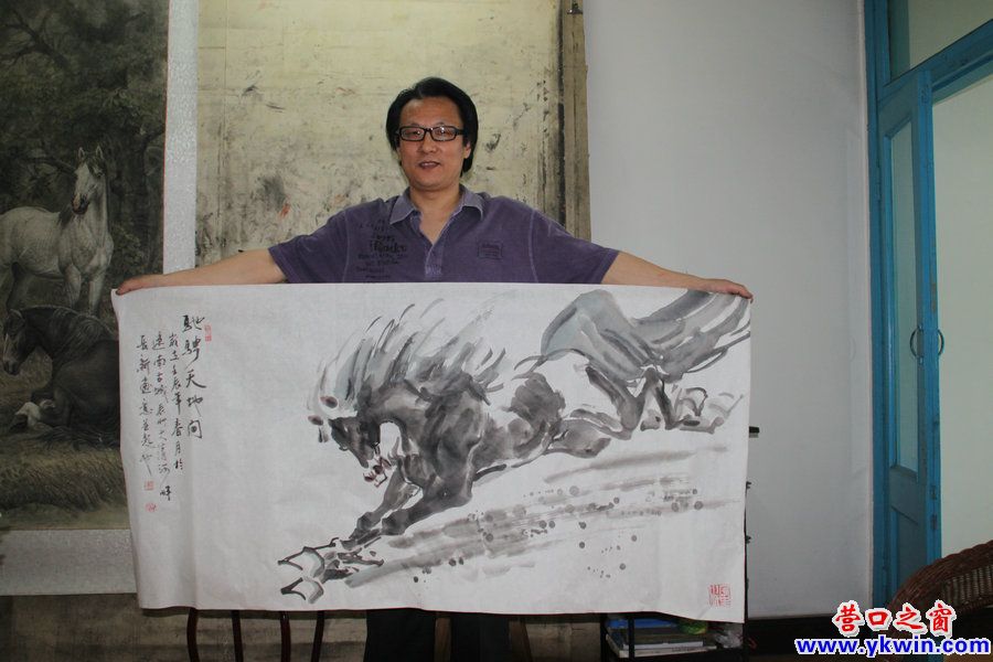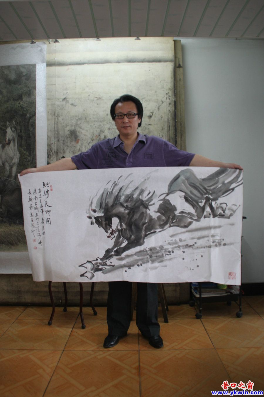 作為中國美術(shù)的傳統(tǒng)題材,駿馬給人以雄強奔放之感覺;因此,千百年來它一直為藝術(shù)家們所鐘愛。不論秦始皇陵的陶馬,霍去病墓前的石馬,還是武威的銅奔馬,唐昭陵的六駿,僅從現(xiàn)今猶存唐宋以來的畫馬真跡,就已令人贊嘆不已。韓干、李公麟、趙子昂、金農(nóng)乃至徐悲鴻、都是畫馬大師,他們的馬畫名作流傳至今,不失為國之瑰寶。其“神馬為師,丹青寫神”更是才俊迭出,各領(lǐng)風(fēng)騷。而今在蓋州,又出現(xiàn)一位畫馬高手,他以其狂飄驟起、驚風(fēng)掠地的神駿馳騁了中國畫壇,他便是著名畫家蓋州嬌子畫馬人劉長新先生。
