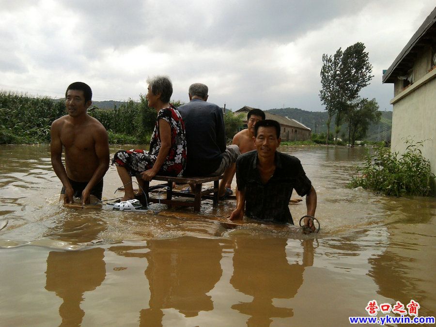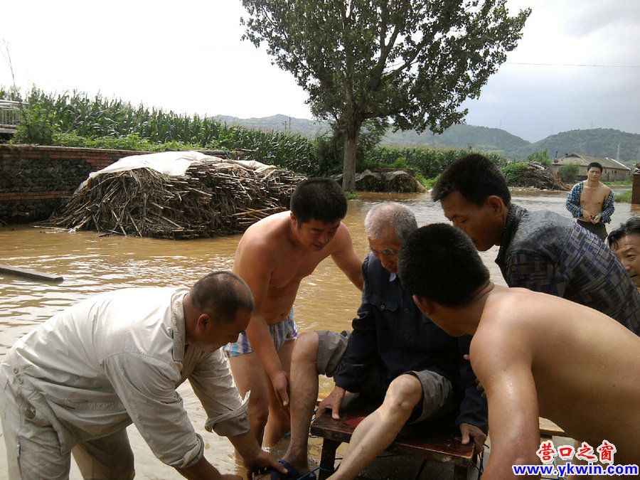 郭洪田鎮(zhèn)長迅速趕往現(xiàn)場,組織包村組長副鎮(zhèn)長富華、村委會主任陳繼頂?shù)炔糠执迕袷┚?此時,洪水猛漲,距房檐僅有1米,因無救生設(shè)備,形勢嚴(yán)峻。郭洪田立刻通知老人的女婿,從市里私人那里借來一艘橡皮筏,必經(jīng)之路的暖泉大橋被沖毀,高屯、團甸大橋被洪水淹沒,徐屯道路不通,極其艱難繞道從梁屯到后暖泉村。近5個小時的營救,老人終于脫離了危險。