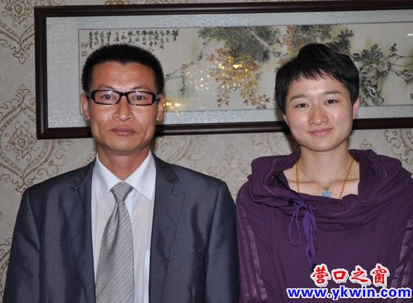 2008北京奧運、2012倫敦奧運跆拳道二連冠軍吳靜鈺與遼寧省代表營口民俗博物館館長曹錫文合影。