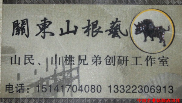 追溯關(guān)東山根藝(山民、山樵)兄弟癡情于根藝的緣由,得從他們的成長環(huán)境和性格特點說起。58歲的大哥湯勇(山民)與47歲的三弟唐鐸(山樵)出生于蓋州東部山區(qū)梁屯鎮(zhèn)綿延村,在山里長大的他們從小就熱愛大自然,對森林、樹木有著濃厚的感情。因為生長在山里,他們不時看到一些砍伐樹木后隨處丟棄、焚燒樹根、廢木料的現(xiàn)象,心里十分心痛,一直想著如何能將資源利用起來,使它們物盡其用。長大后,他們走出了大山,視野開闊,見到了許多美麗的根藝作品,知道根藝就是將毫無生命的樹根,依據(jù)它的形狀用審美的眼光挖掘出它豐富的內(nèi)涵。既有藝術(shù)價值,又可以避免資源浪費。兄弟二人漸漸地喜愛并癡情地成為愛好者,以至成為他們以后的追求。