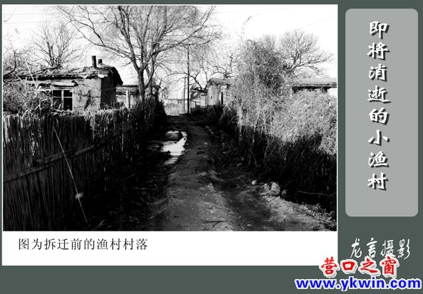 由于舅父早年住在營口河北的小漁村,所以30多年來龍言每年都往返營口的河南與河北之間,他對小漁村的變化歷歷在目。近年來,隨著小漁村漁民及其后代逐漸搬遷至遼河南岸的營口城區(qū),漁村的老房舍更加破舊,一部分老舊房舍逐漸被拆遷。