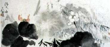 朱長(zhǎng)仁深知畫荷花之形容易,而畫出其“神”、畫出其高格調(diào)和文化品位卻不易。朱長(zhǎng)仁的荷畫從藝術(shù)上看有著鮮明的個(gè)性特色,在傳統(tǒng)上有創(chuàng)新有發(fā)展。工寫結(jié)合,虛實(shí)兼蓄,而且相互融匯貫通;構(gòu)圖飽滿,主體突出,打破中國(guó)畫傳統(tǒng)構(gòu)圖方式;色調(diào)淡雅,不妖不媚不俗;線條流暢,造型準(zhǔn)確,夸張適度;動(dòng)靜結(jié)合,有動(dòng)有靜,有聲有色。
