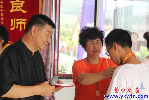 孫曉杰與志愿者協(xié)會(huì)領(lǐng)導(dǎo)為參加夏令營(yíng)活動(dòng)的孩子頒獎(jiǎng);