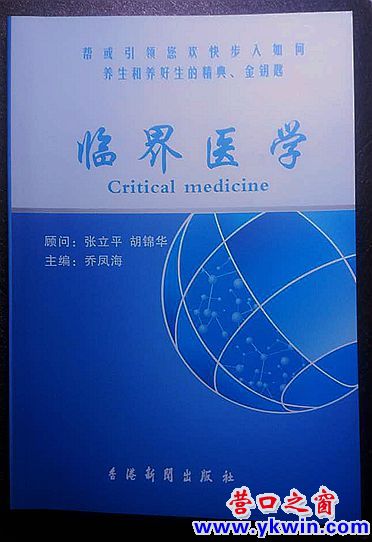 退役后的喬鳳海,沒有停止對學科領(lǐng)域的深入研究和思考,近日,喬鳳海新編的具有養(yǎng)生、保健思想的科學著作《臨界醫(yī)學》由香港新聞出版社出版,在學術(shù)界立即引起了關(guān)注和反響。