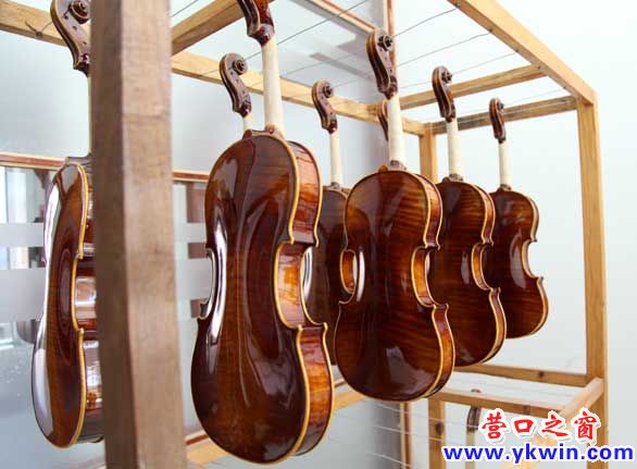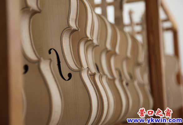 進(jìn)入提琴?gòu)S,一排排手工提琴整齊的懸掛在棚頂,在這里的每一把提琴都是獨(dú)一無二的,每一把身上都傾注了制造者的心血,每一把都有一個(gè)自己的故事。