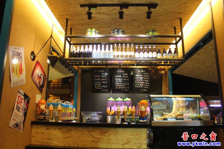 遠觀激浪藍、陽光黃的箱體:一對吊板懸空的窗口及騎窗而做的窗臺,透出愜意、溫馨……工藝上,都是螺絲固定的, 拆、疊、裝隨意,讓消費者盡享飲品的快樂。尤其是晚間,當暖調的燈光從窗口瀉出時,每位步入 X-Box水鋪的消費者都有久別而歸的領地感,這或許就是設計者的神來之筆。