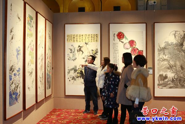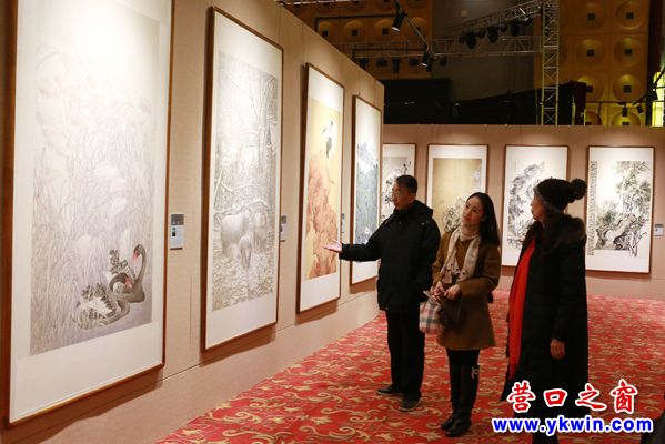 1月6日,“遼河春曉”中國·營口首屆美術(shù)作品邀請展開展首日,觀展的領(lǐng)導(dǎo)、嘉賓和美術(shù)愛好者人頭攢動,擦肩摩踵。開展后第三天的1月8日,紅運大酒店儷景中心的安保人員以為一場大雪會減少參觀者的人數(shù),沒想到鐘情藝術(shù)的營口市民踏雪紛紛而至,有一家三口前來觀展的,也有兒女?dāng)v扶著上了年紀(jì)的父母前來一飽眼福的,還有同學(xué)、好友結(jié)伴而來的,其中有大量的美術(shù)愛好者,也有看了新聞報道而前來參觀的普通市民。