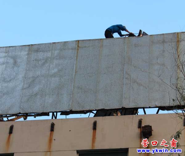 據(jù)學(xué)校方面介紹,營口市實驗學(xué)校(簡稱五中)東樓四樓頂部有一塊長30米、高7米的廣告宣傳牌匾。由于設(shè)置時間較長,鐵質(zhì)框架已銹跡斑駁并松動,廣告面已風(fēng)化全無?,F(xiàn)階段我市正值夏季風(fēng)雨季節(jié),年久失修廣告牌匾隨時有掉落危險。廣告牌匾在學(xué)校東樓頂部,上下學(xué)時間老師學(xué)生經(jīng)常路過,市民也經(jīng)常喜歡在學(xué)校附近林蔭小路行走、休憩,極易給老師、學(xué)生和來往行人帶來安全隱患。