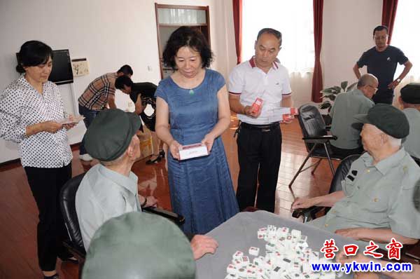 民進(jìn)營(yíng)口市委副主委馬麗娜、秘書長(zhǎng)高紅為市光榮院老榮軍發(fā)放收音機(jī)