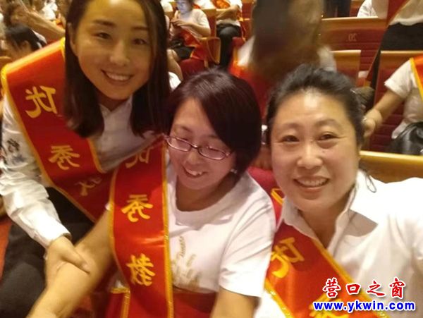 2018年教師節(jié)期間,在區(qū)里舉行的慶祝第三十四個教師節(jié)大會上,彩霞小學幾位獲獎教師的留影。(右一為郭素艷老師,中間為尹長久老師,左一為高月老師)