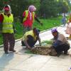 曾經樹坑里的酸臭的污水,現(xiàn)如今已經被園林工作人員填滿。