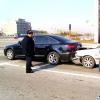 兩輛轎車強(qiáng)吻一輛三輪車