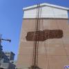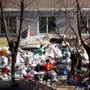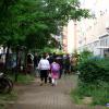 營口15路公交車太和新村站旁邊的居民樓門口堆著大小亂石,下水井還汩汩的流淌著污水。