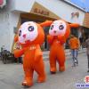 某?;佑⒄Z班的“大頭人”來到營口公園路邊宣傳招生吸引了許多人的目光。