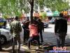 10月1日,營口公園路邊一家超市選擇在10月1日開業(yè)。沒想到早晨一陣狂風(fēng)雨刮來將門前剛擺放的盆花吹得連滾帶爬,就像民歌《回娘家》中的少婦在路途中遭遇風(fēng)雨一樣狼狽。