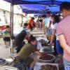 商販正在出售活赤甲紅