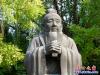 在營(yíng)口楞嚴(yán)寺公園,站在孔子等六位文化名人對(duì)面還有六位中國(guó)古代大師級(jí)的人物。