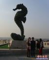 10月4日,在鲅魚圈山海廣場的一角,一些游客正在逗羊駝玩,羊駝也不懼怕陌生的游客。