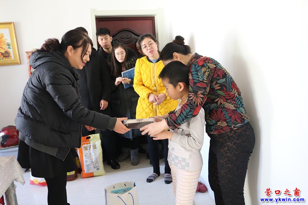 在春節(jié)來臨之際,為了使轄區(qū)內的貧困兒童過一個愉快、美好的春節(jié),2月5日上午,得勝街道辦事處副主任陳艷麗、中國(遼寧)自由貿易試驗區(qū)營口片區(qū)政務服務中心黨支部代表及新騰達社區(qū)黨委書記鄭金令帶著一份關心和祝福走訪了轄區(qū)內2名貧困兒童。