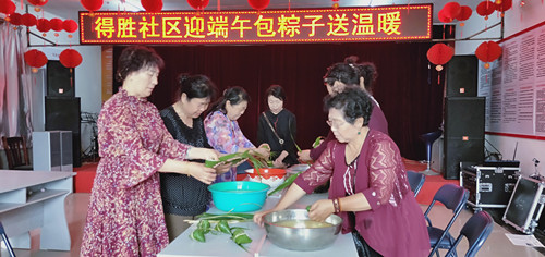 端午節(jié)到來之際,得勝社區(qū)組織開展“迎端午包粽子送溫暖”主題活動(dòng)。