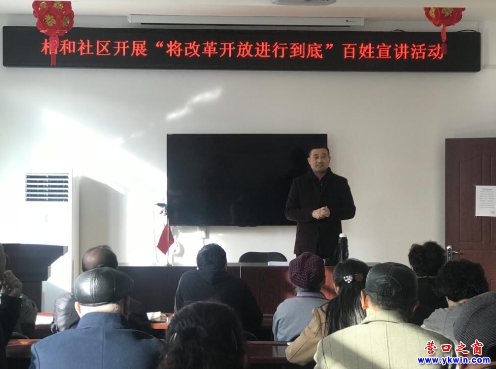 為慶祝改革開放40周年,11月7日上午相和社區(qū)組織開展“將改革開放進(jìn)行到底”百姓宣講活動(dòng)。 本次宣講活動(dòng)由具有從軍生活26年的轉(zhuǎn)業(yè)軍人,現(xiàn)為社區(qū)志愿者,李遠(yuǎn)同志主持并對(duì)“為什么要將改革開放進(jìn)行到底”進(jìn)行宣講討論。參加本次活動(dòng)的有三單八聯(lián)共建單位成員、社區(qū)工作者和群眾。