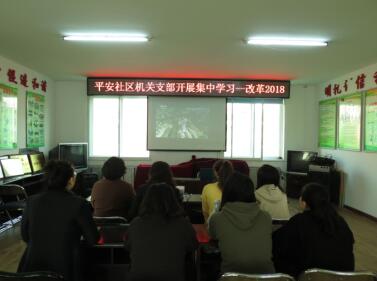 1月24日下午,西市區(qū)勝利街道辦事處平安社區(qū)機關(guān)支部組織黨員開展集中觀看學(xué)習(xí)——改革2018。在社區(qū)二樓會議室,機關(guān)支部黨員們齊坐在大屏幕前,集中觀看認真聆聽。