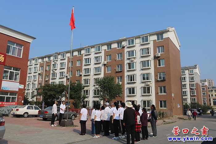 早晨8點(diǎn)30分,社區(qū)工作者及轄區(qū)黨員、居民來(lái)到社區(qū)樓門前舉行升旗儀式,當(dāng)雄壯嘹亮的國(guó)歌奏響,五星紅旗冉冉升起時(shí),在場(chǎng)的人們默默地對(duì)著國(guó)旗行注目禮,并共同唱起了國(guó)歌,當(dāng)國(guó)旗升到旗桿頂端時(shí),大家目視著五星紅旗在空中隨風(fēng)飄揚(yáng),心中充滿了力量和自豪感。