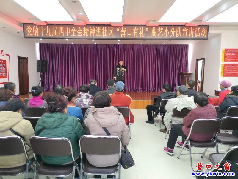 為使黨的十九屆四中全會精神深入人心,市委宣傳部創(chuàng)新宣講方式,組織曲藝演員、轄區(qū)黨員、群眾、志愿者等40余人在紅運(yùn)社區(qū)三樓活動室開展黨的十九屆四中全會精神進(jìn)社區(qū)“營口有禮”曲藝小分隊宣講活動,市委宣傳部副部長韓瑞祥、市文聯(lián)副主席謝忠科等領(lǐng)導(dǎo)也參加了此次活動。