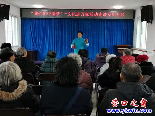 1月7日下午,發(fā)明社區(qū)三樓活動(dòng)室笑聲洋溢、掌聲陣陣、歡悅滿堂。居民歡聚一堂觀看由營(yíng)口市公共文化服務(wù)中心主辦、營(yíng)口市青少年宮和營(yíng)口市非物質(zhì)文化遺產(chǎn)保護(hù)中心承辦的“我們的中國夢(mèng)”——文化進(jìn)萬家活動(dòng)的專場(chǎng)演出,在新春佳節(jié)即將來臨之際,為廣大居民送上了溫暖的“文化盛宴”。