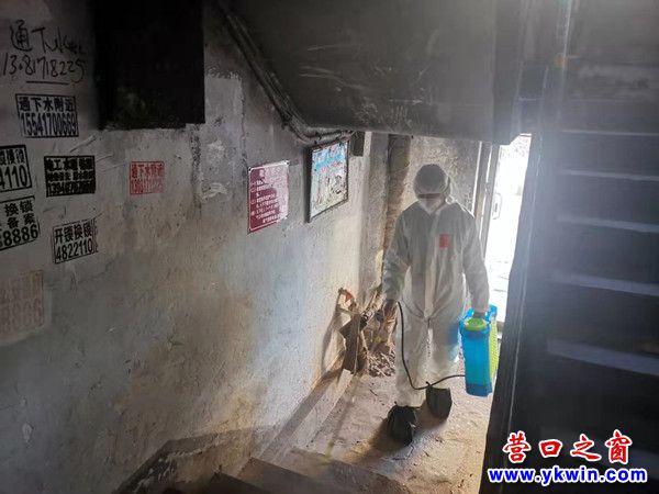社區(qū)工作人員對(duì)轄區(qū)的每個(gè)樓棟口進(jìn)行全面消毒,全力以赴做好疫情防控工作。