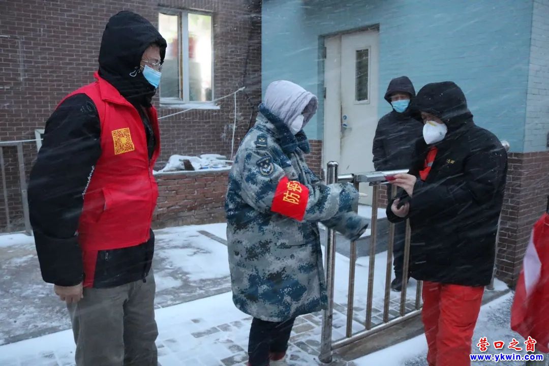 為了堅決落實“內(nèi)防擴散、外防輸入”,她們每天冒著未知的風(fēng)險嚴守麗湖“北大門”,嚴防嚴控,細化措施,徹底阻斷傳染源。目前,租住在新海佳苑小區(qū)的外地返營職工及其家屬已有千余人,為嚴格執(zhí)行外地返營人員居家自行隔離14天的要求。麗湖社區(qū)派專人負責(zé)小區(qū)卡點值守登記工作,天不亮,她們就已裝備齊全,穿戴好防護衣等防護用品,站在了小區(qū)門前。為了防止隔離期內(nèi)的返營務(wù)工人員出入小區(qū),她們采取為小區(qū)居民辦理出入卡的方式,在出入卡上登記隔離日期并蓋章確認,在出入小區(qū)時,卡點值守人員要同時核對出入卡上的信息和本人身份證信息一致,才允許出入小區(qū)。由于社區(qū)工作人員有限,輪崗次數(shù)少,她們經(jīng)常在寒風(fēng)暴雪中連續(xù)值守五六個小時。雖然夜幕已經(jīng)來臨,手腳凍僵了、眉毛上霜了,但她們在卡點站立的身影依舊挺拔。